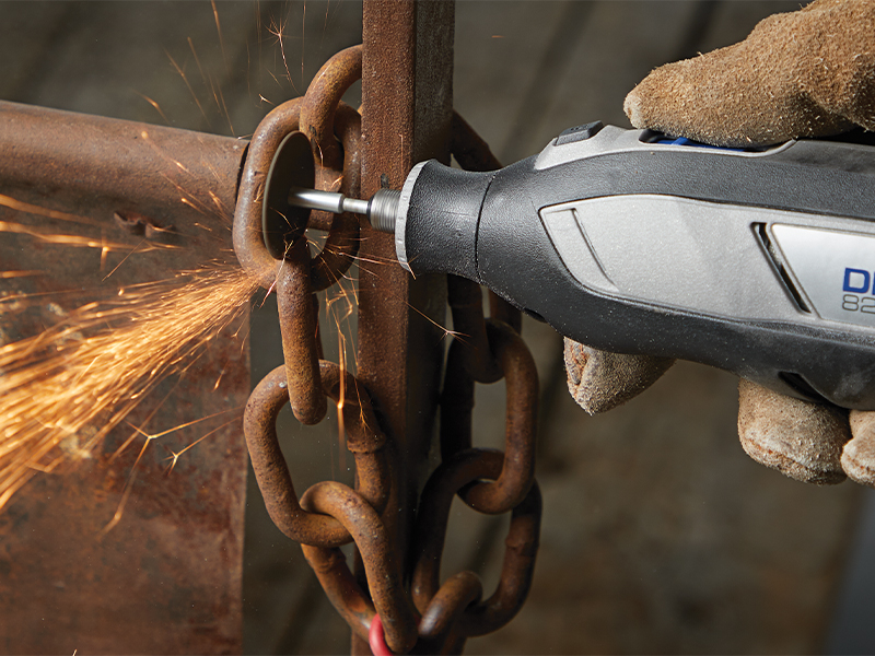 From the ergonomic tool design to the button placement, this portable multi-tool has it all. You’ll love our trademark Dremel look and feel, with its super easy set-up and logical layout. We’ve made it run cooler and with lower noise (compared to Dremel 8220) so you can focus all your attention on your project. Plus the soft grip fits you like a glove. The speed setting of the Dremel 8240 is in the middle, right where you place your thumb to hold the tool. Now that’s ergonomic design at your fingertips.
