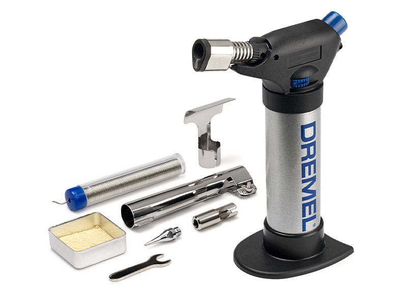 The Dremel VersaFlame is the only stationary burner that safely supports open flame use and comes with a catalyst and soldering head, making it the most versatile stationary burner in the market today, especially for DIY applications. The Dremel VersaFlame is powered by liquid butane gas for quick heat-up and fast recharge. Applications for use include: soldering, shrinking, welding, etc.